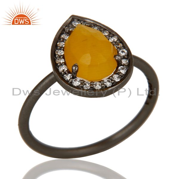 Oxidized Sterling Silver Moonstone And White Topaz Stacking Ring