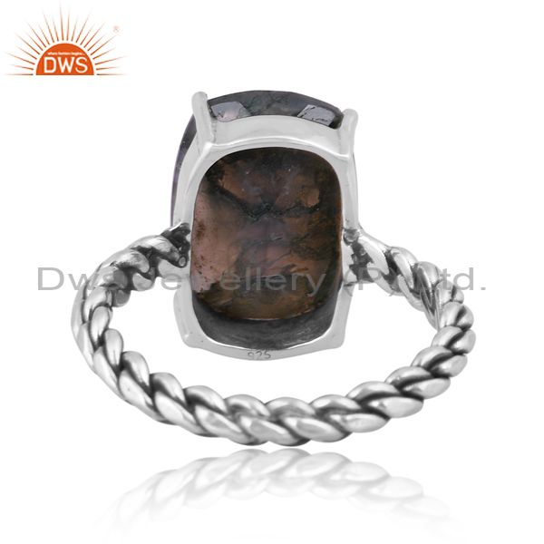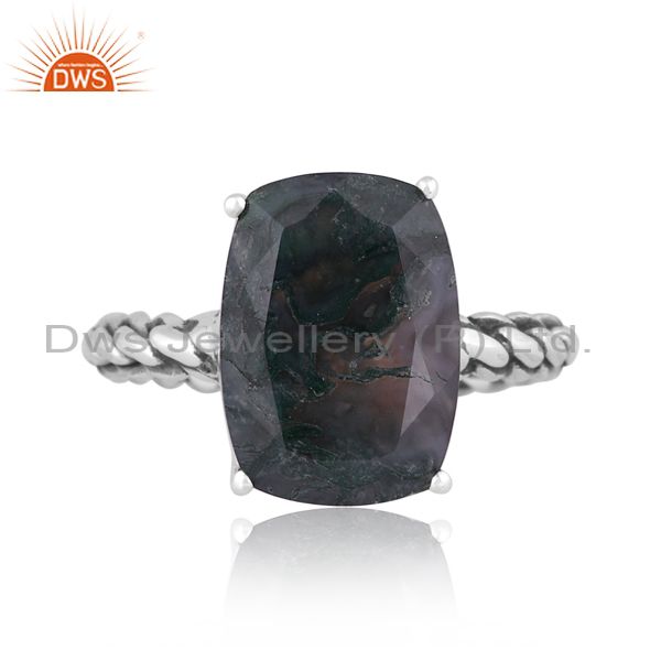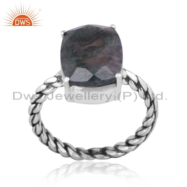 Oxidized Sterling Silver Moss Agate Set Handmade Twist Ring