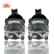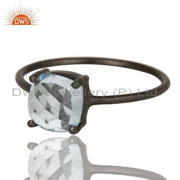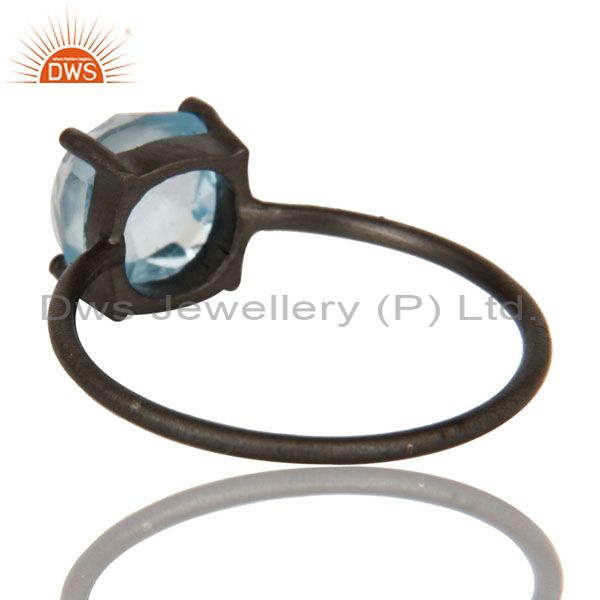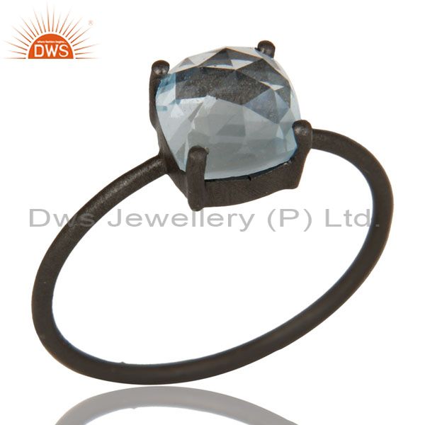Oxidized Sterling Silver Natural Blue Topaz Prong Set Gemstone Stackable Ring