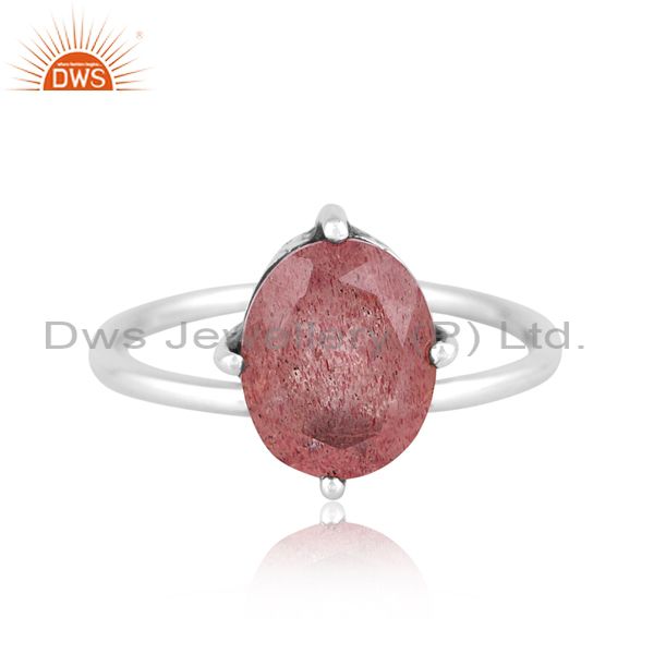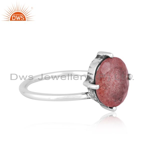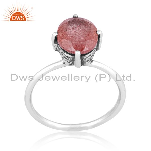 Oxidized Sterling Silver Oval Cut Strawberry Quartz Set Ring