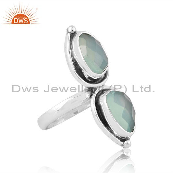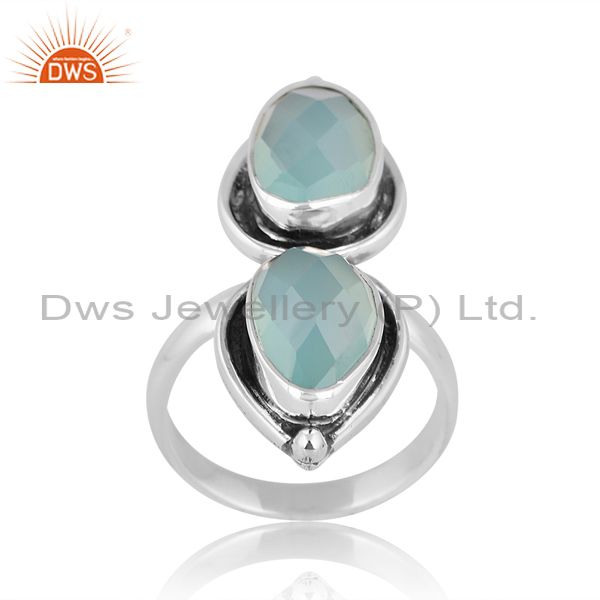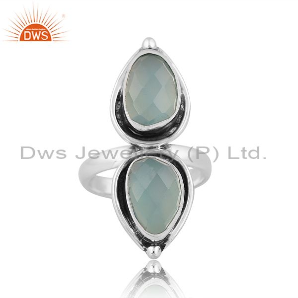 Oxidized Sterling Silver Ring With Aqua Chalcedony