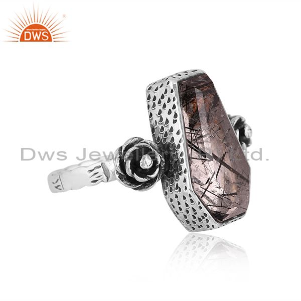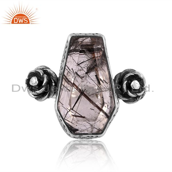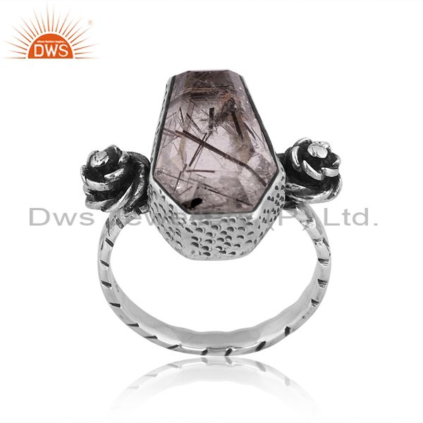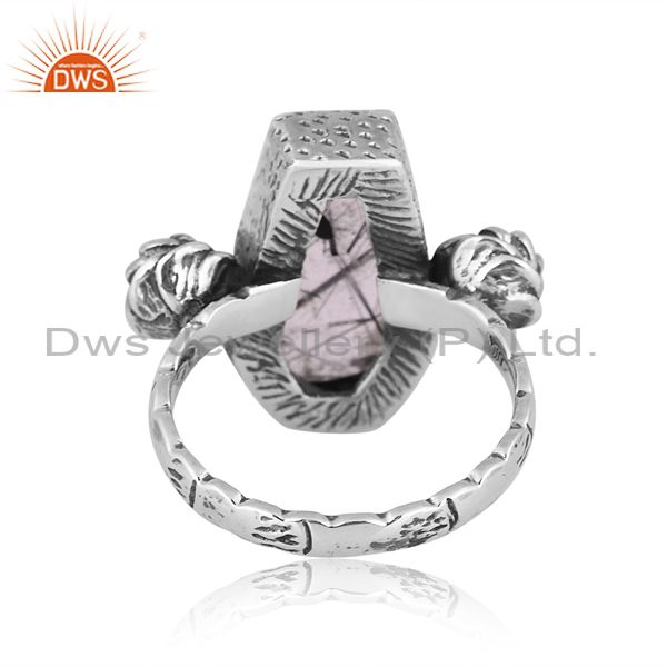 Oxidized Sterling Silver Ring With Black Rutile Coffin