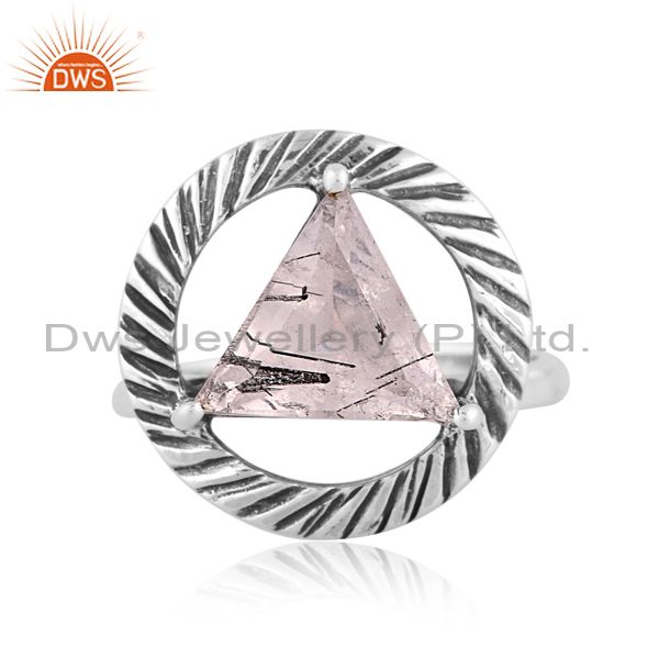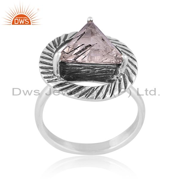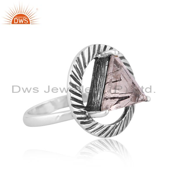 Oxidized Sterling Silver Ring With Black Rutile Cut Stone