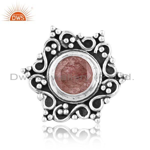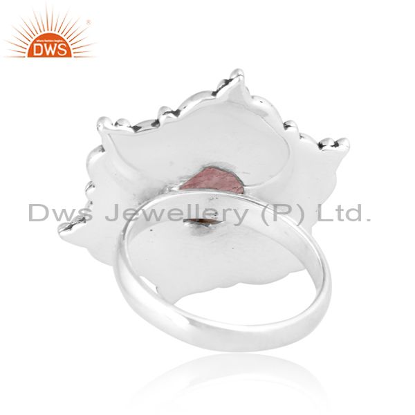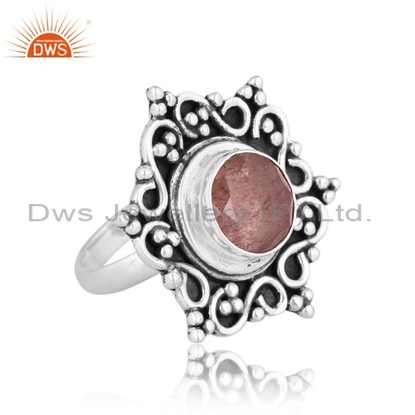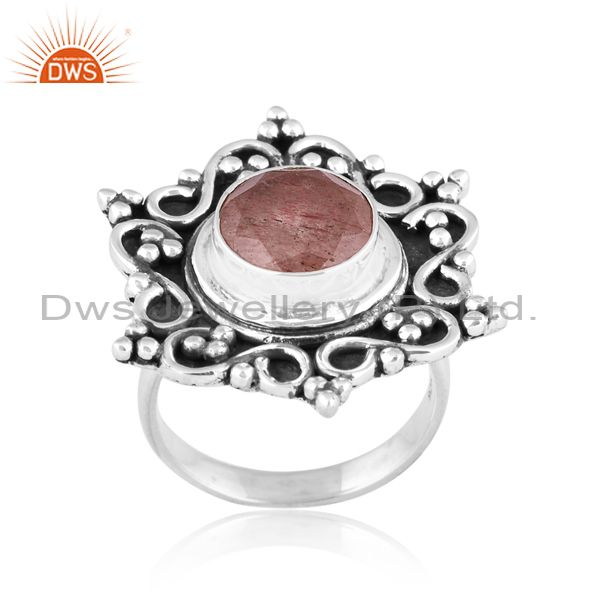 Oxidized Sterling Silver Ring With Strawberry Quartz Stone
