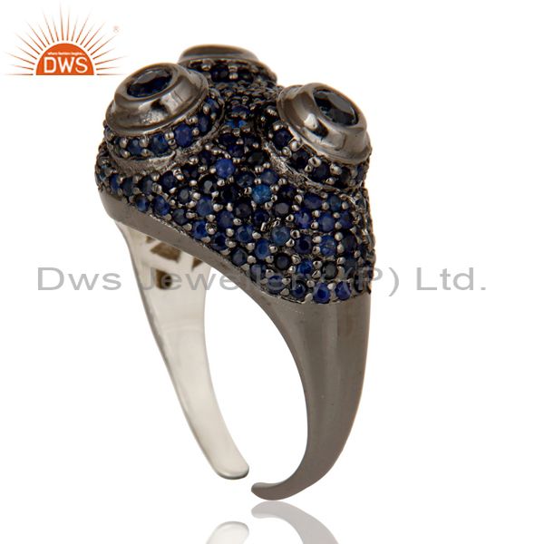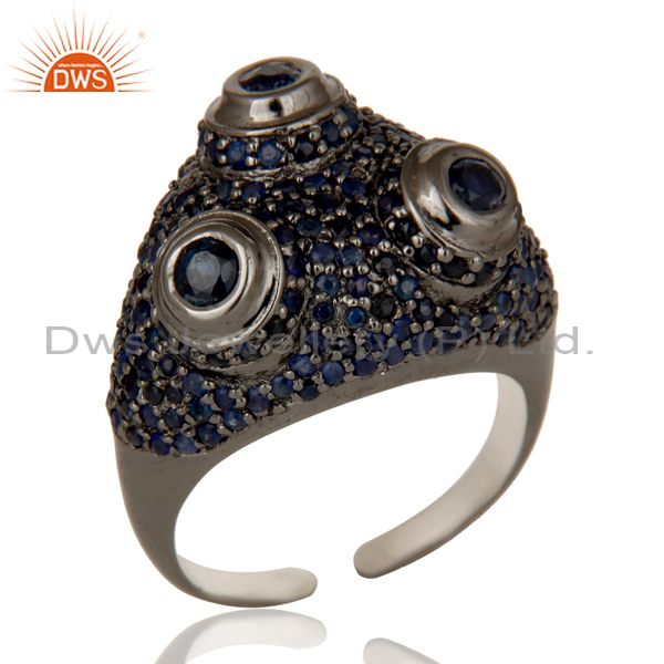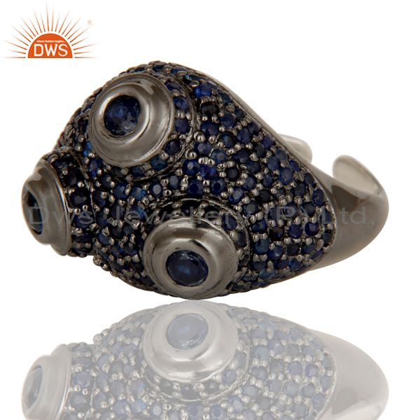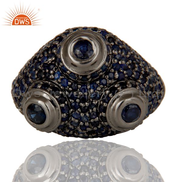Pave Blue Sapphire Birthstone Victorian Estate Style Sterling Silver Ring