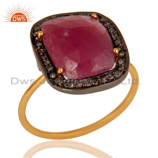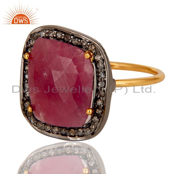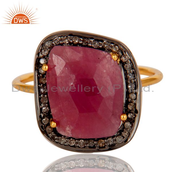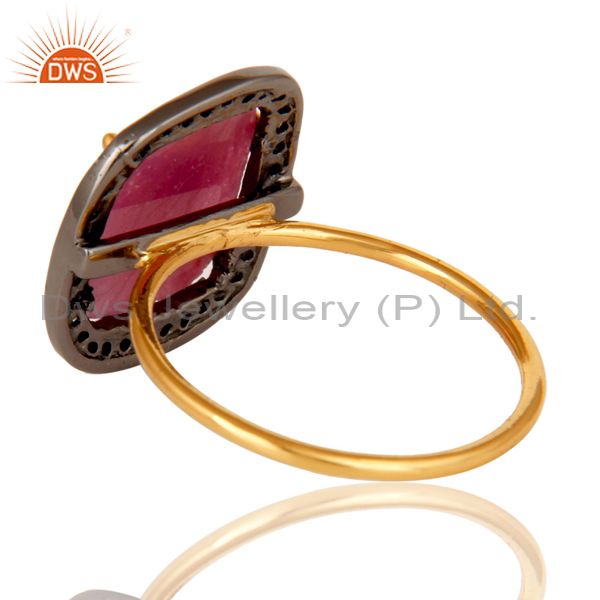 Pave Diamond And Natural Ruby Black And Yellow Gold Plated Sterling Silver Ring