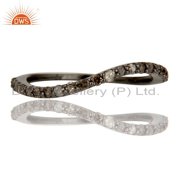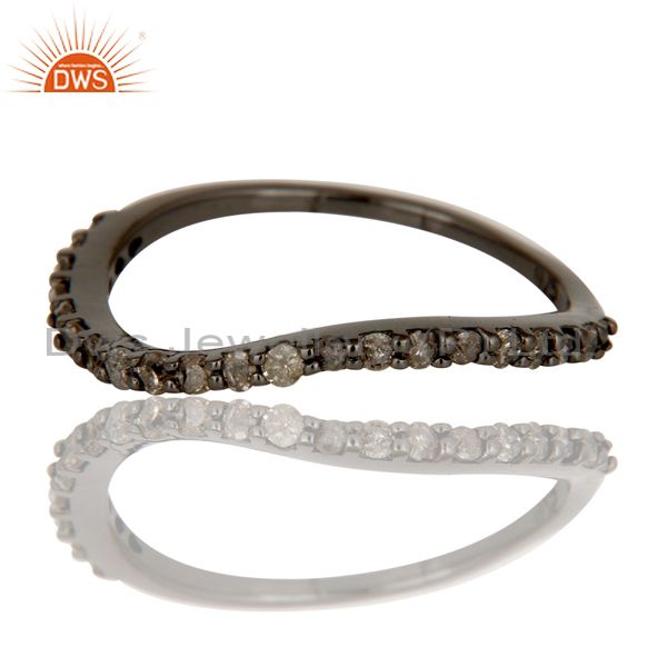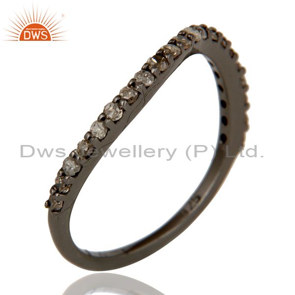 Pave Diamond Black Oxidized Sterling Silver Band Ring