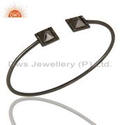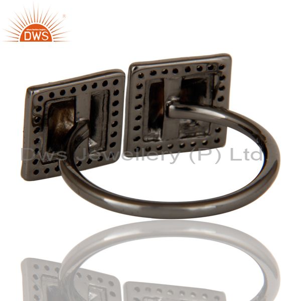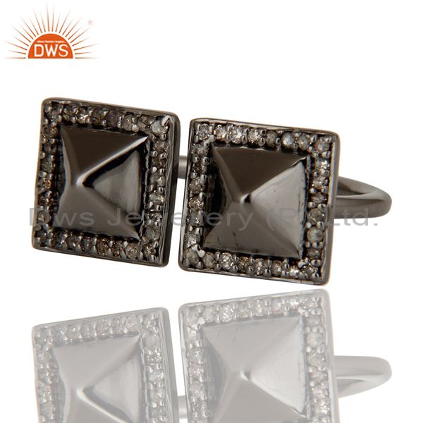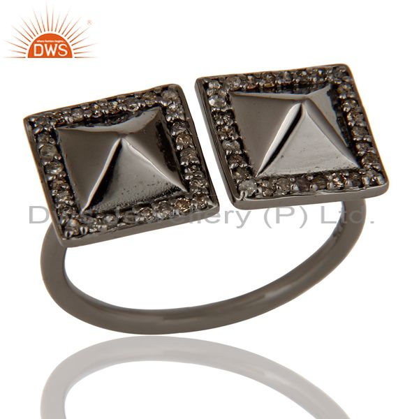Pave Diamond Black Oxidized Sterling Silver Pyramid Shape Ring Statement Ring