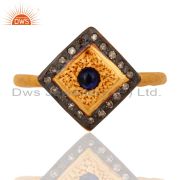 Pave Diamond Blue Sapphire18k Gold Plated 925 Sterling Silver High Fashion Ring