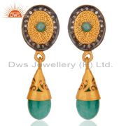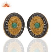 Pave Diamond Emerald Gemstone Sterling Silver Statement Ring With 18K Gold Plate