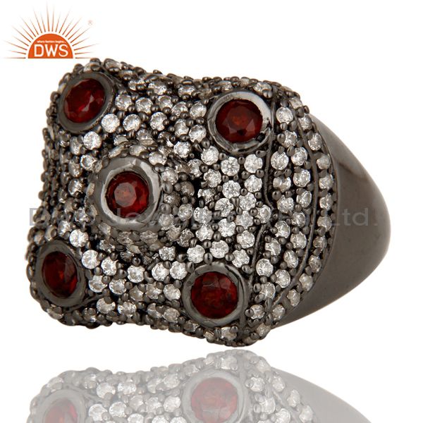 Pave Garnet and White Zircon Victorian Estate Style Gemstone 925 Silver Ring