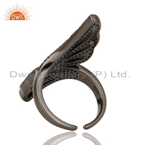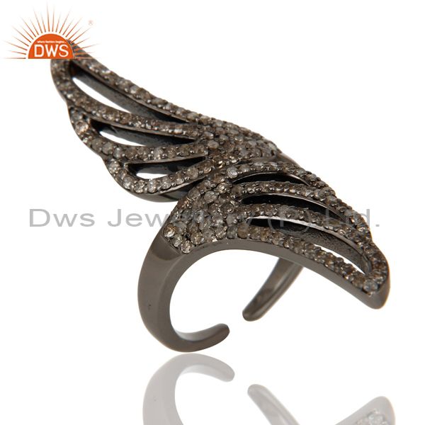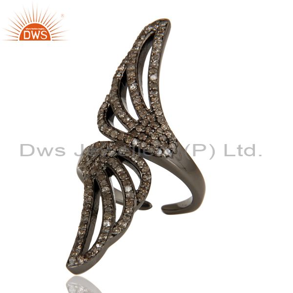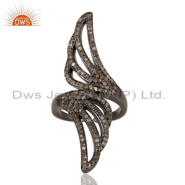 Pave Set Diamond Oxidized Sterling Silver Midi Ring