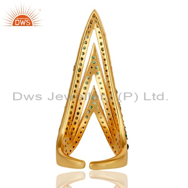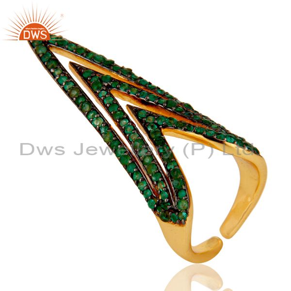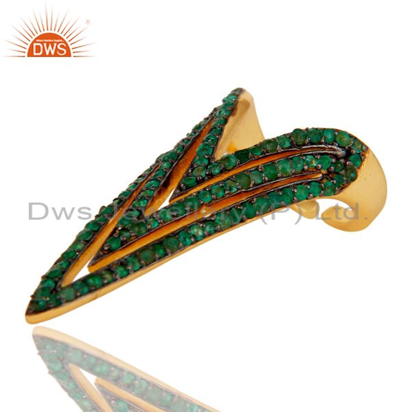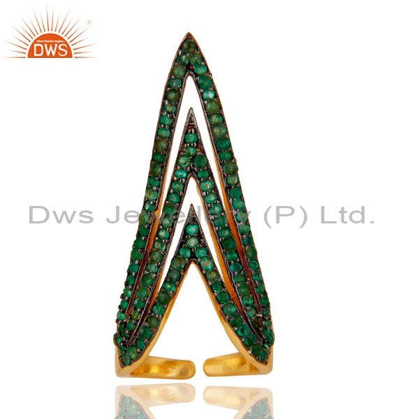 Pave Set Emerald Nail Fashion Ring Made In 14K Gold Over Sterling Silver