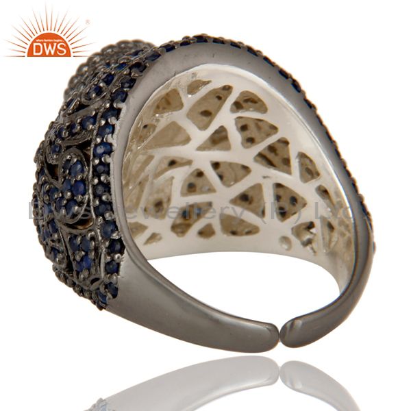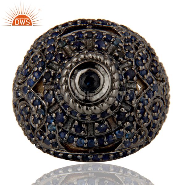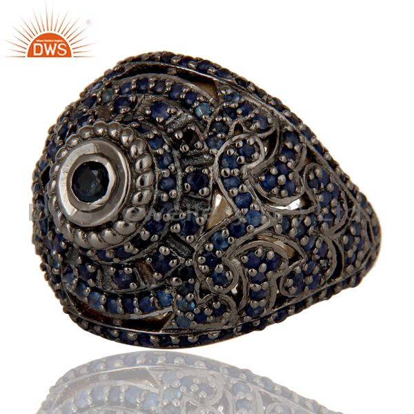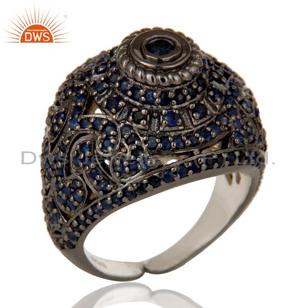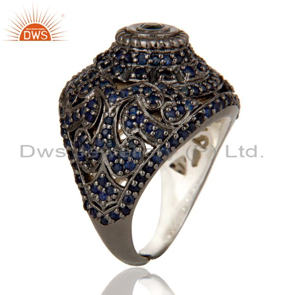 Pave Setting Blue Sapphire Victorian Estate Style Gemstone Silver Ring