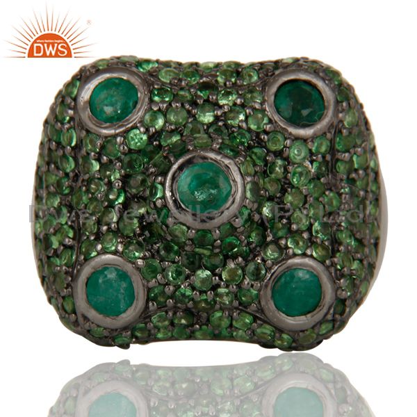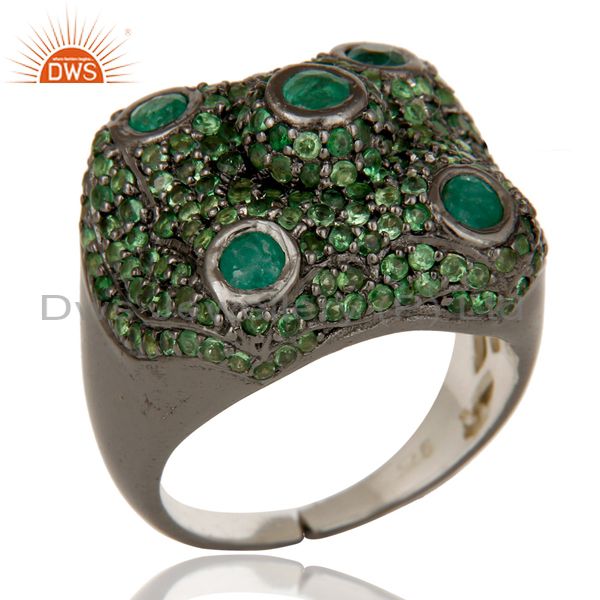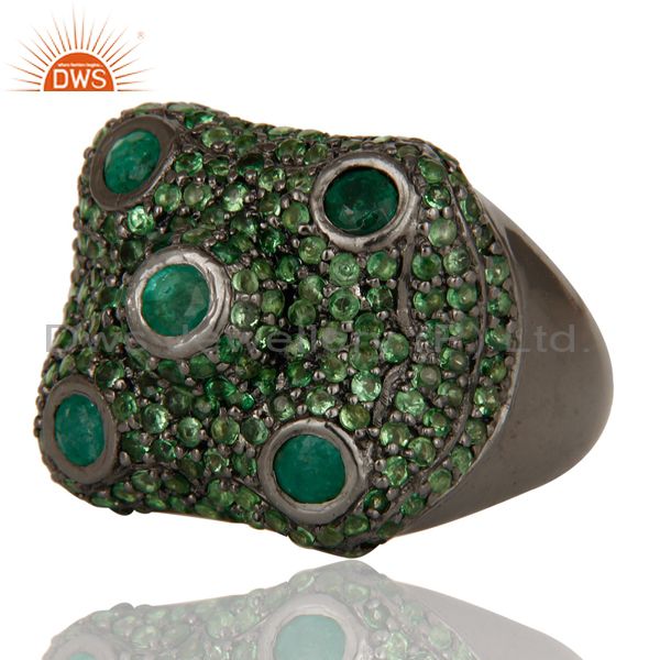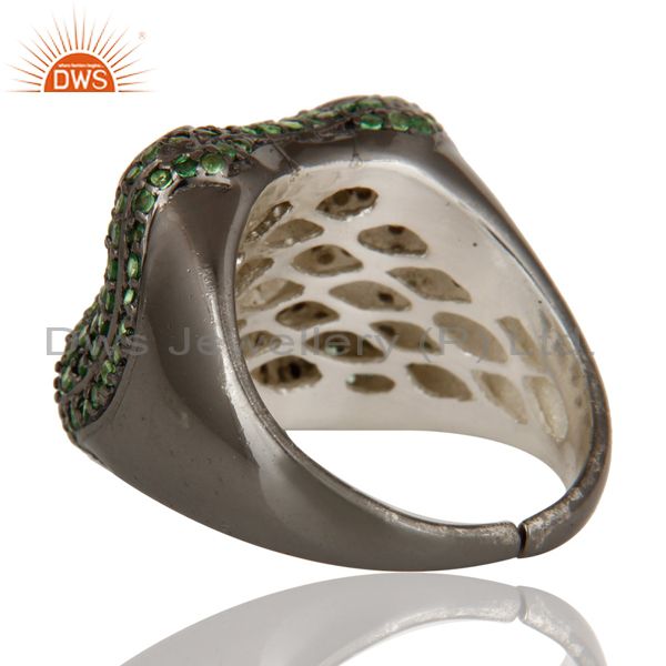 Pave Tsavourite Emerald Victorian Estate Style Gemstone 925 Silver Ring