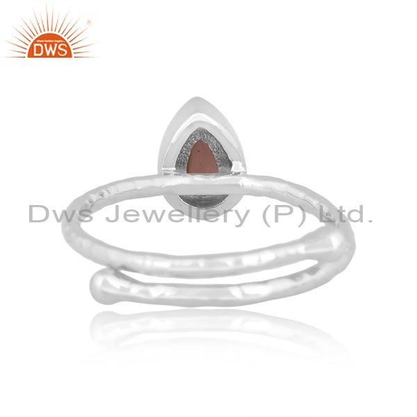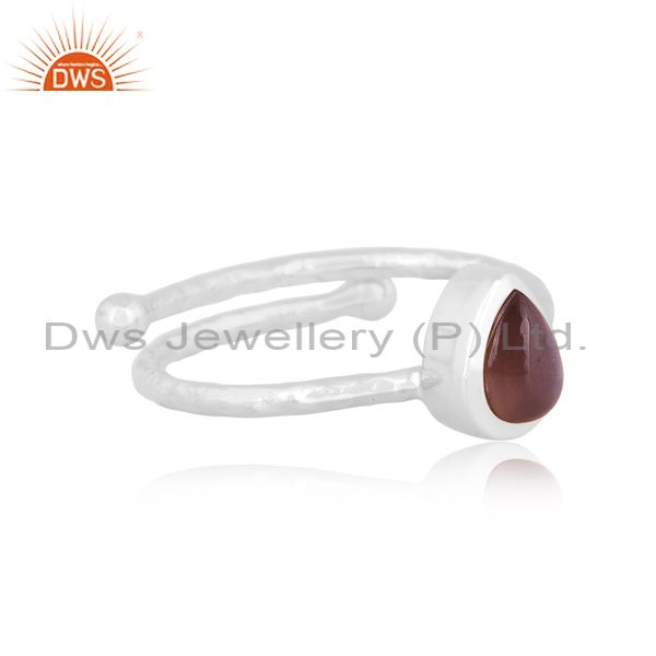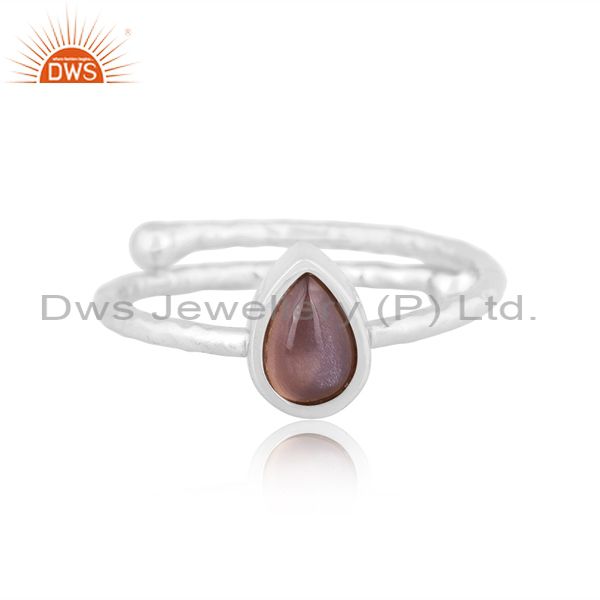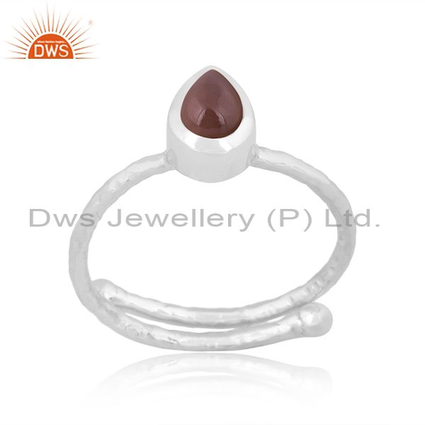 Pea Cut Chocolate Moonstone Set Fine Sterling Silver Ring