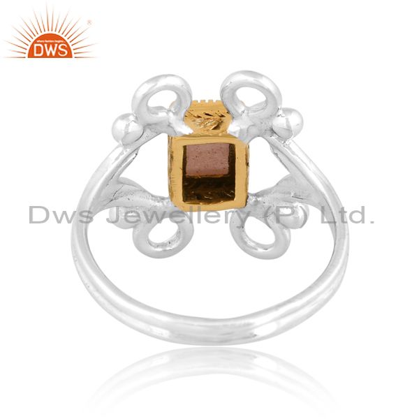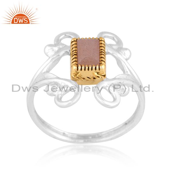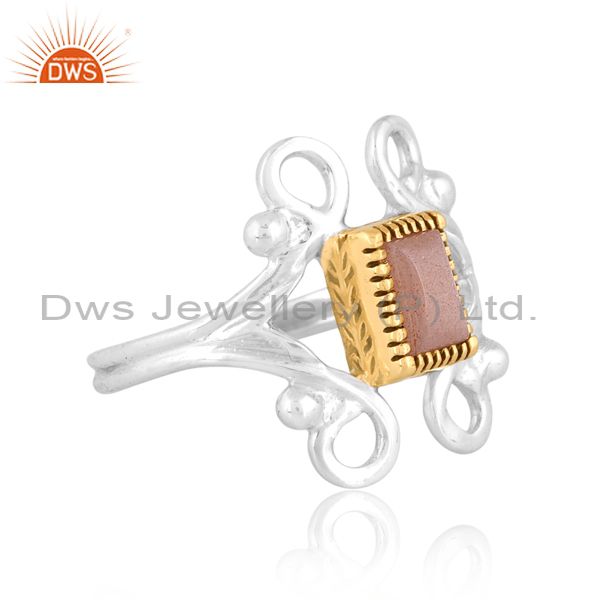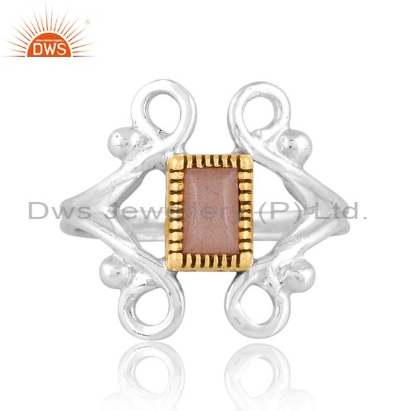 Peach Moonstone On Classy Sterling Silver White & Gold Ring