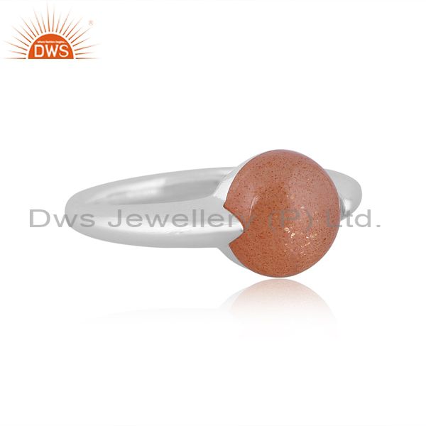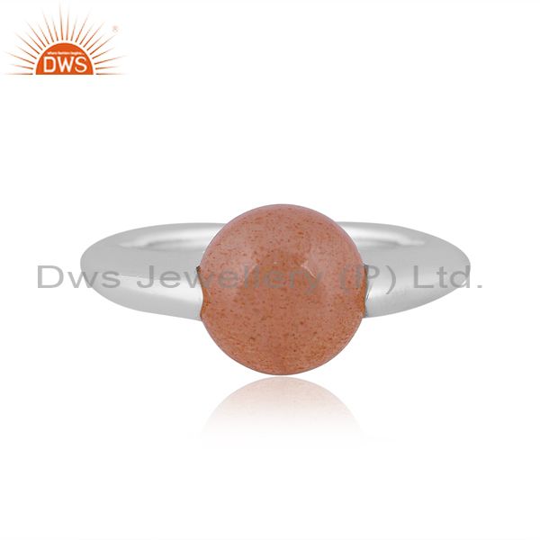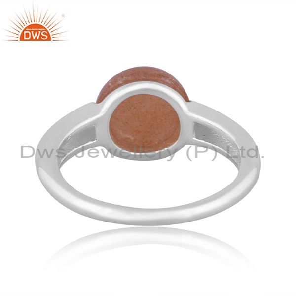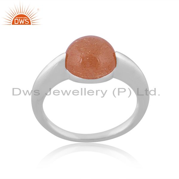 Peach Moonstone Set Fine 925 Sterling Silver Handmade Ring
