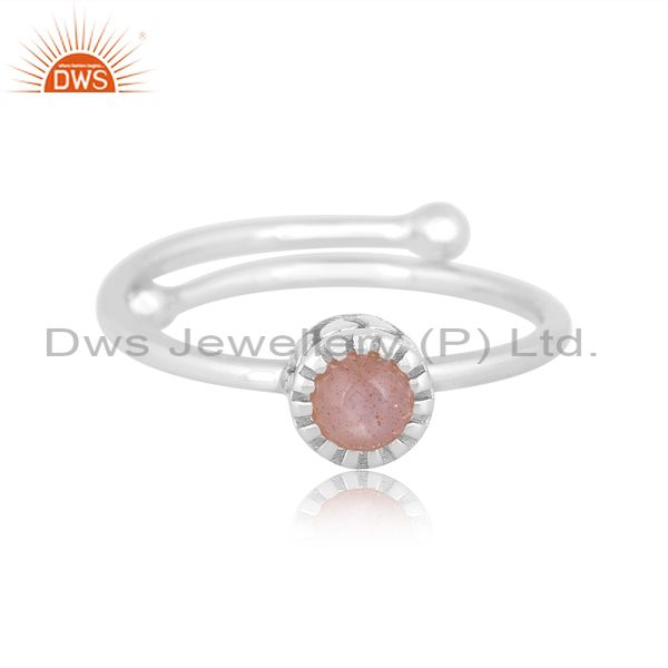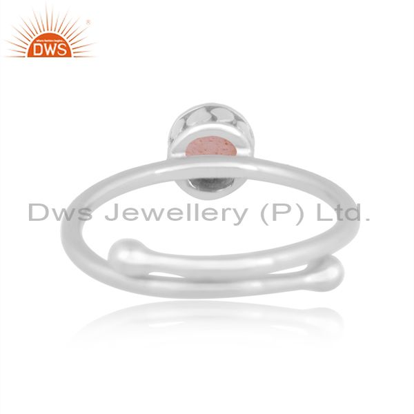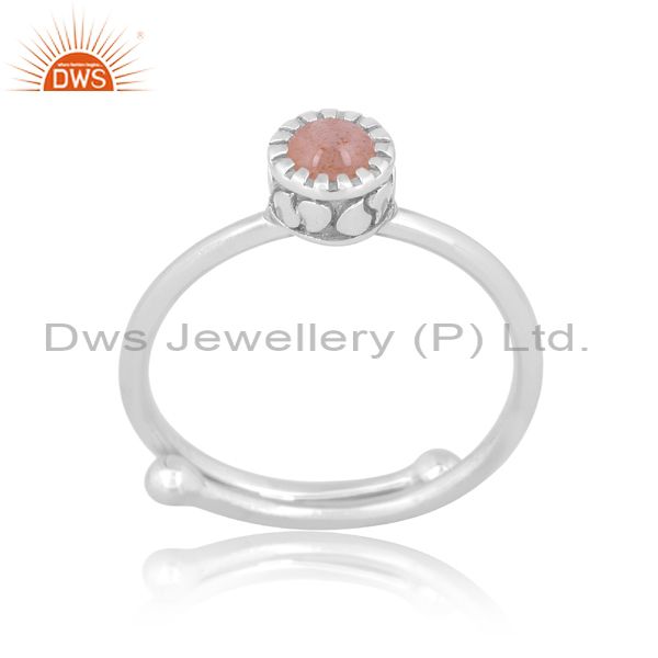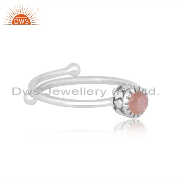 Peach Moonstone Set Fine Sterling Silver Designer Crown Ring