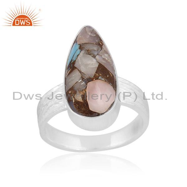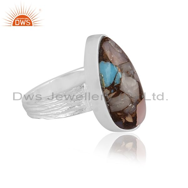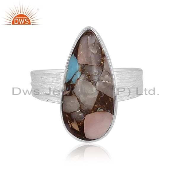 Pear Mojave Copper Pink Opal Turquoise Fine Silver Ring