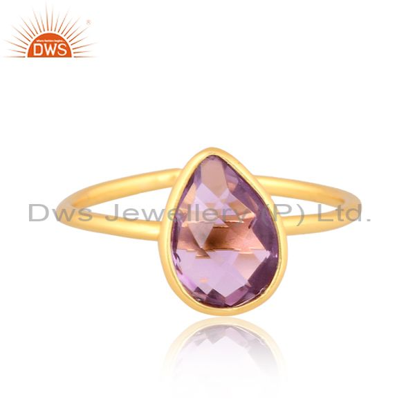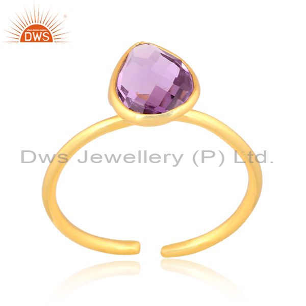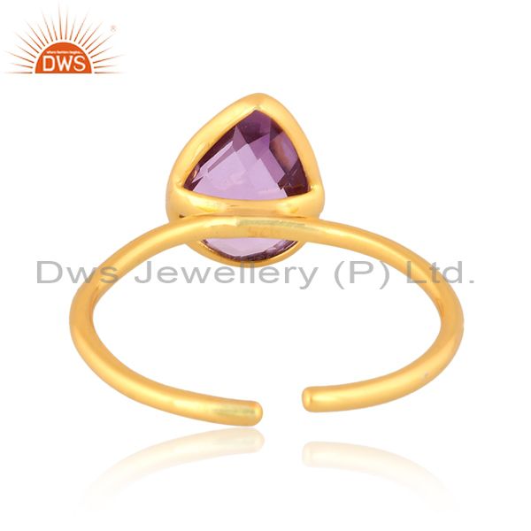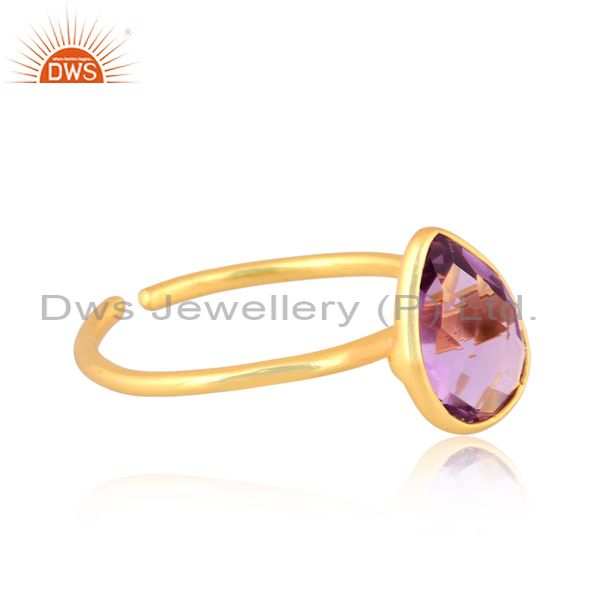 Pear Cut Amethyst Set Gold On 925 Sterling Silver Open Ring