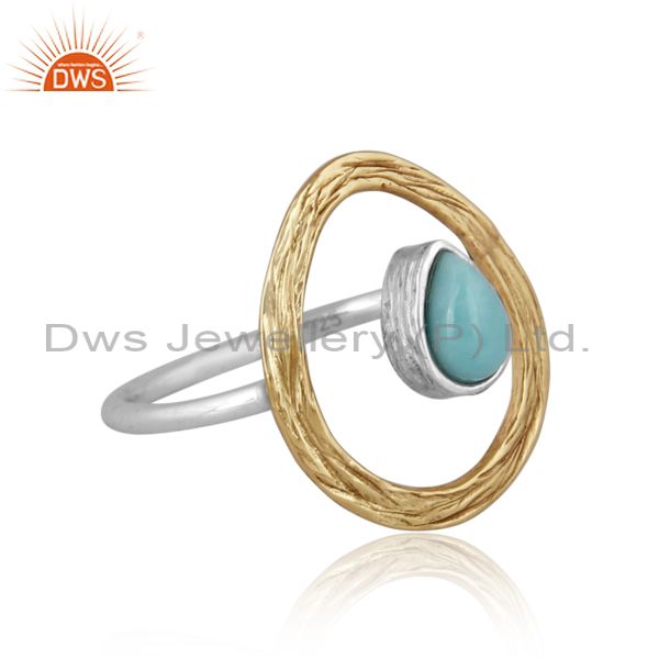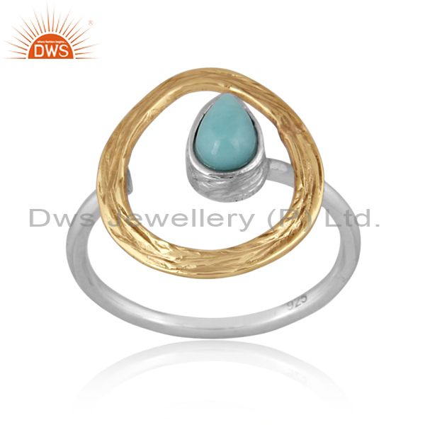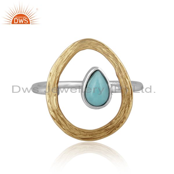 Pear Cut Arizona Turquoise Gold On Fine Silver Designer Ring