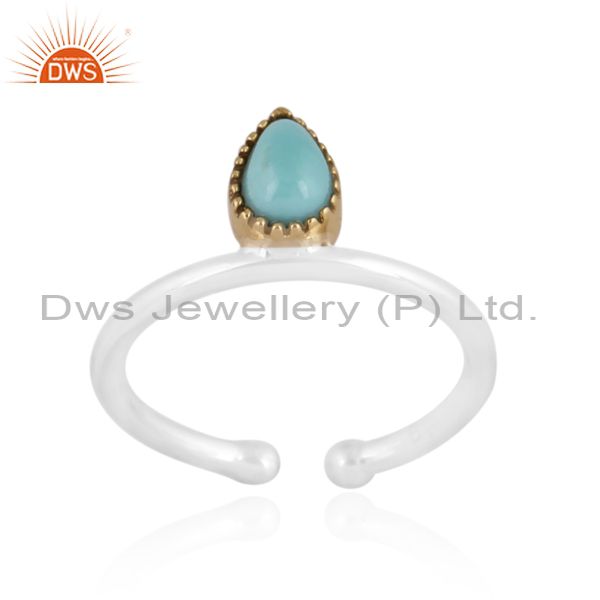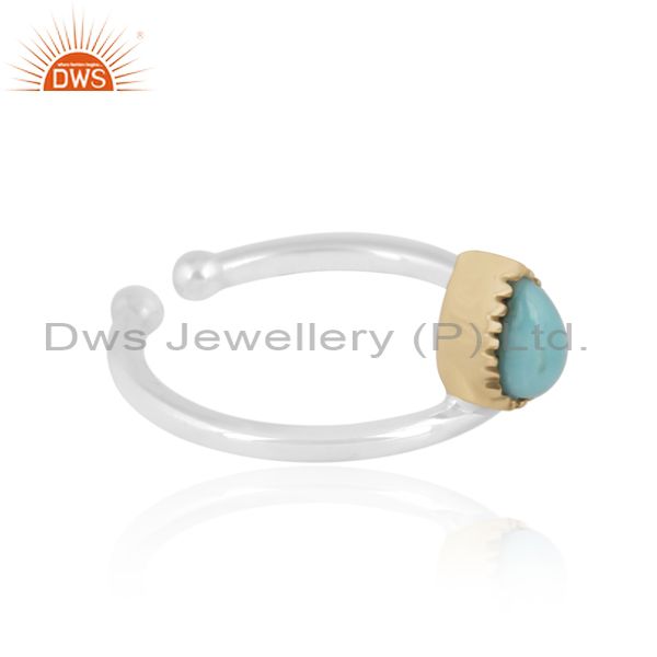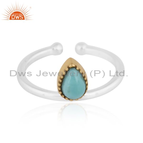 Pear Cut Arizona Turquoise Gold On Fine Sterling Silver Ring