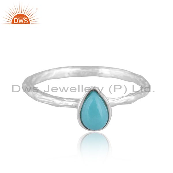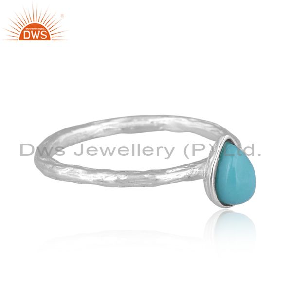Pear Cut Arizona Turquoise Set Fine Silver Handhammered Ring
