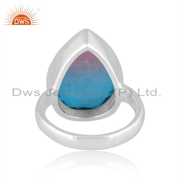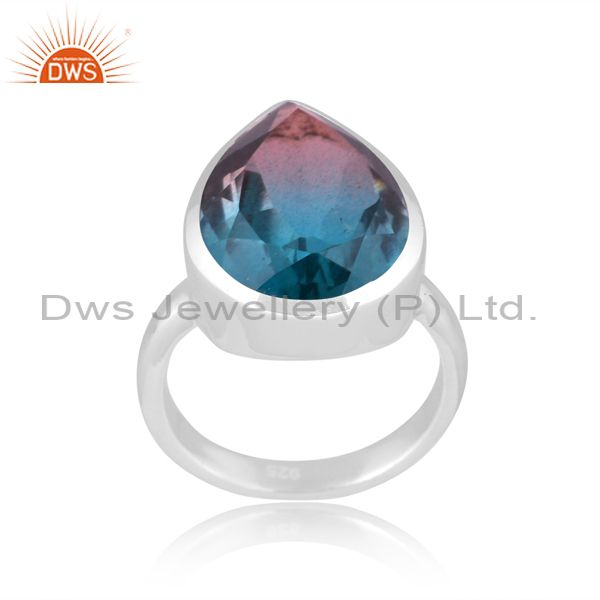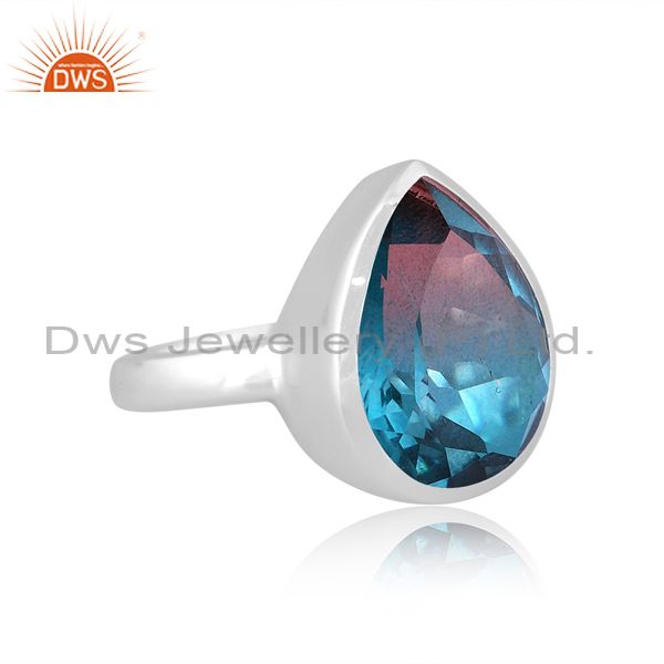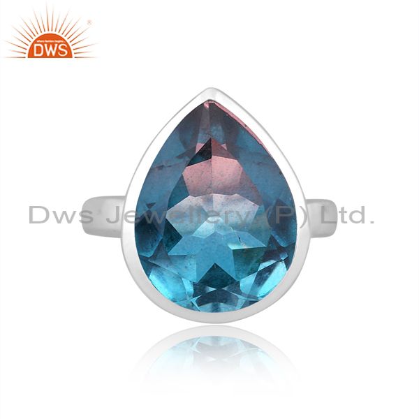 Pear Cut Bio Alexandrite Doublet Quartz Set Fine Silver Ring