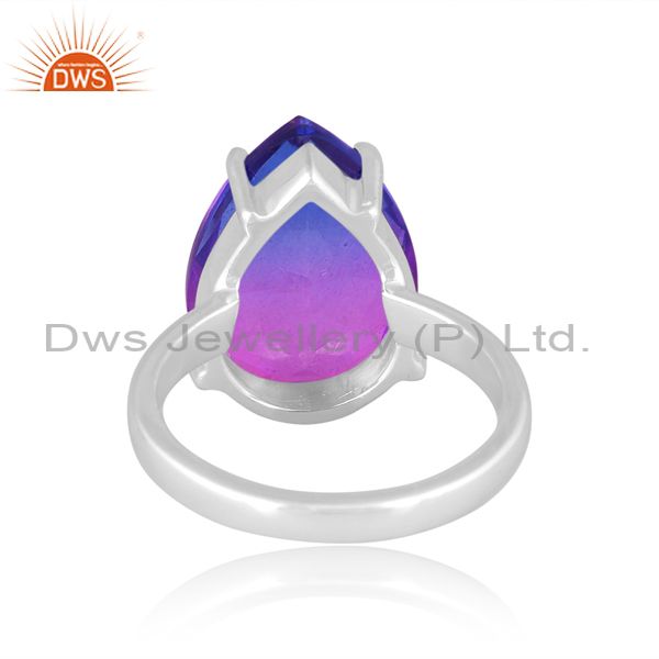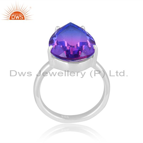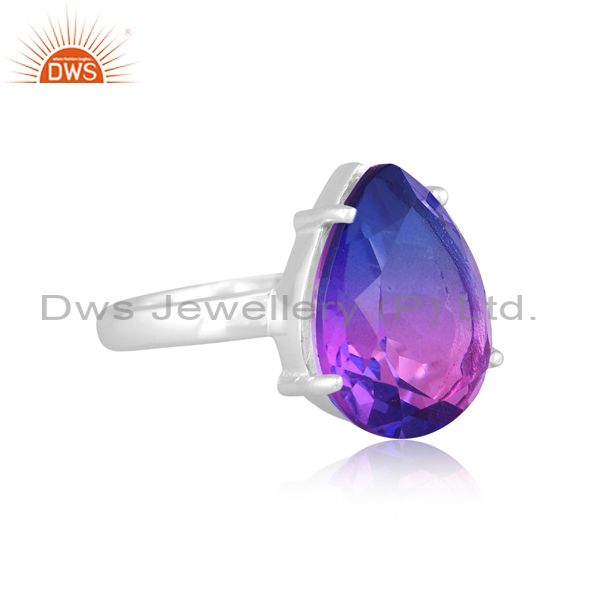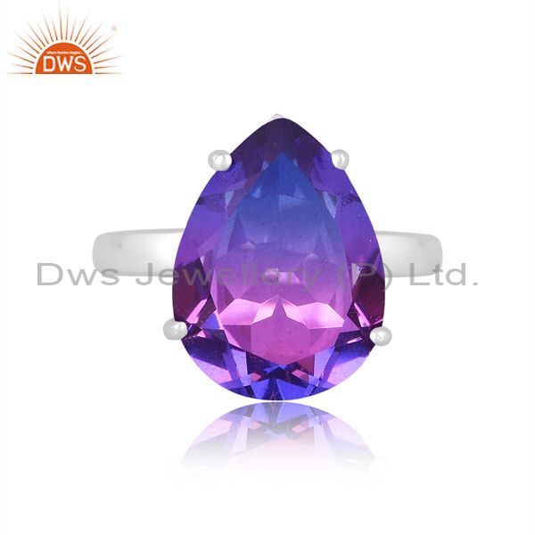 Pear Cut Bio Amethyst Doubletquartz Set Fine Silver Ring