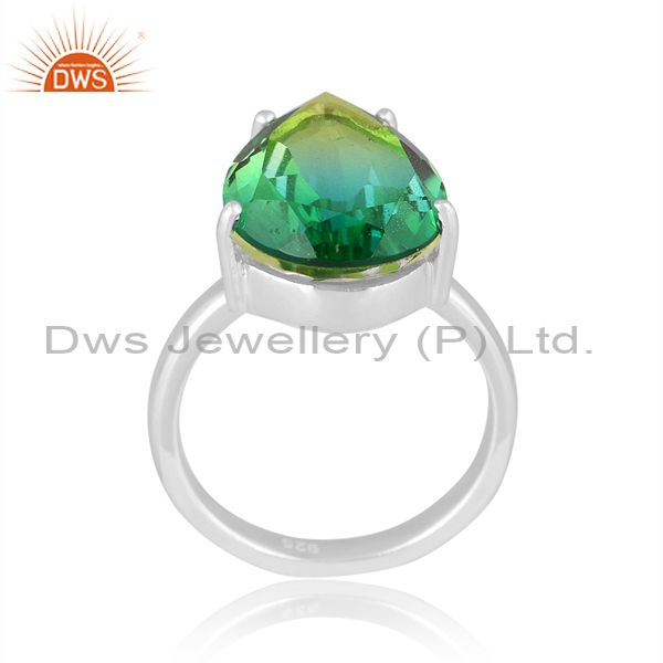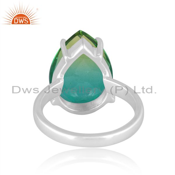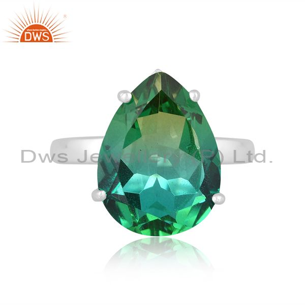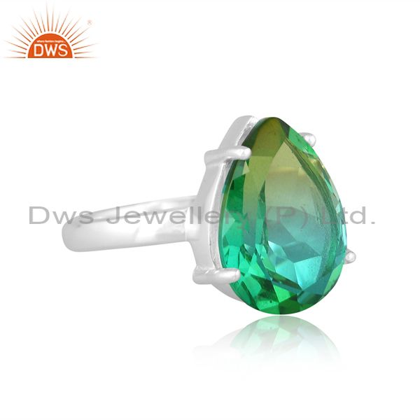 Pear Cut Bio Chromediopside Doublet Quartz Fine Silver Ring