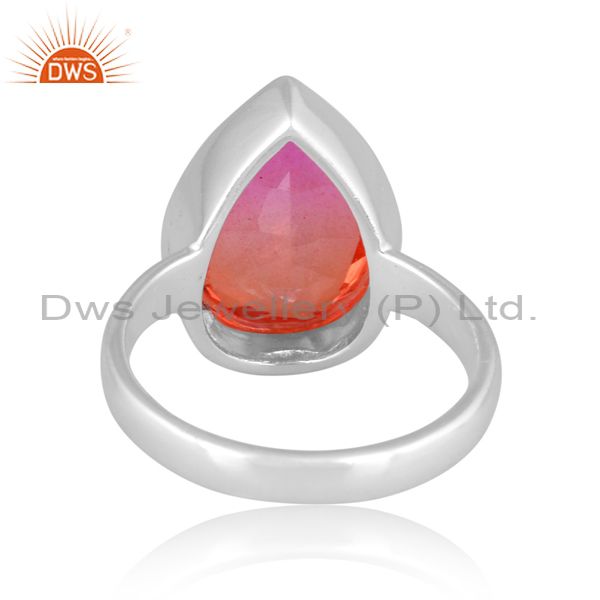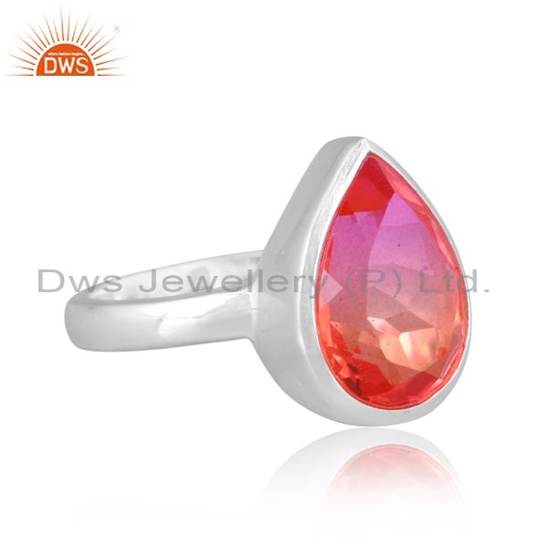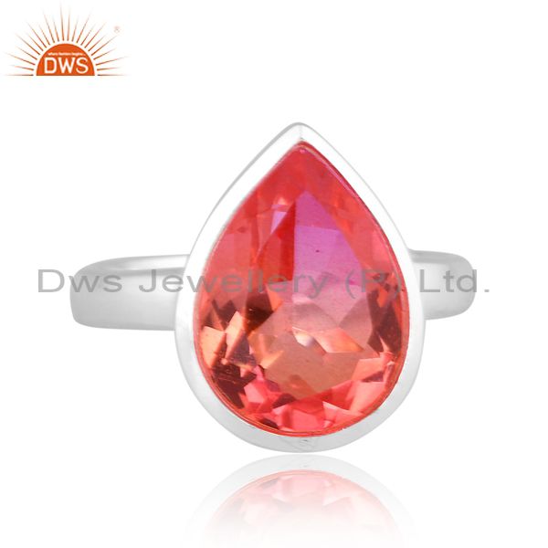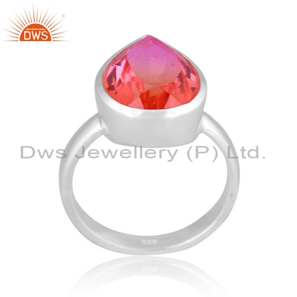 Pear Cut Bio Pink Doublet Quartz Set Fine 925 Silver Ring