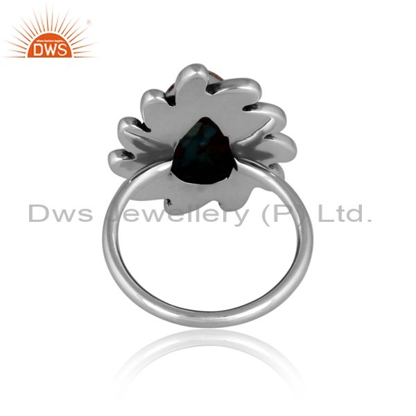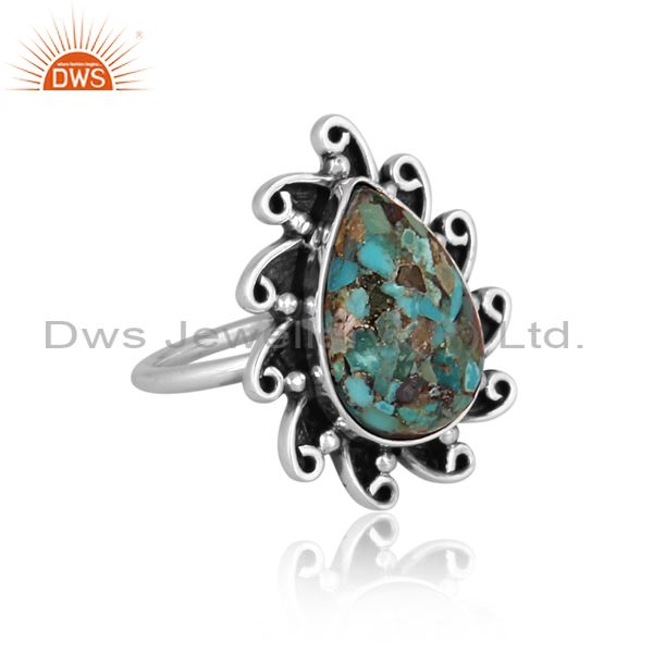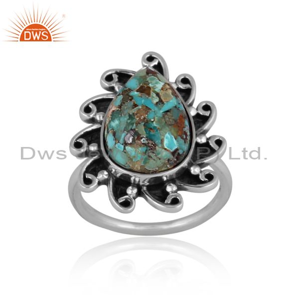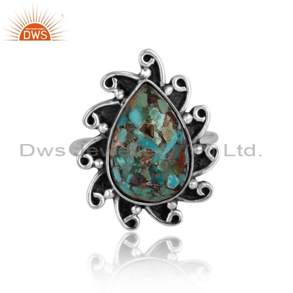 Pear Cut Boulder Turquoise Set Oxidized 925 Silver Boho Ring