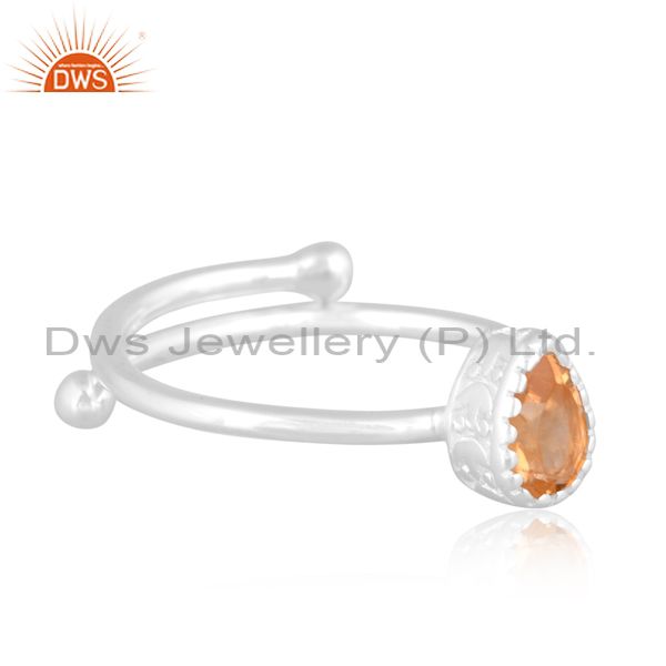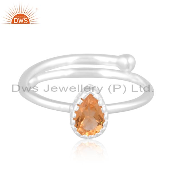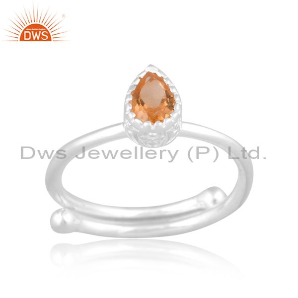 Pear Cut Citrine Set Fine 925 Sterling Silver Crown Ring