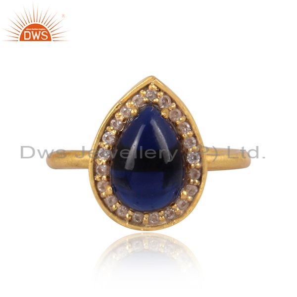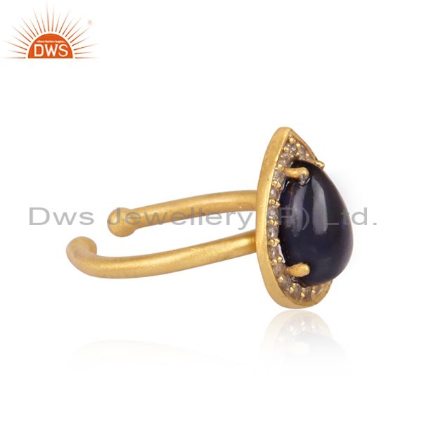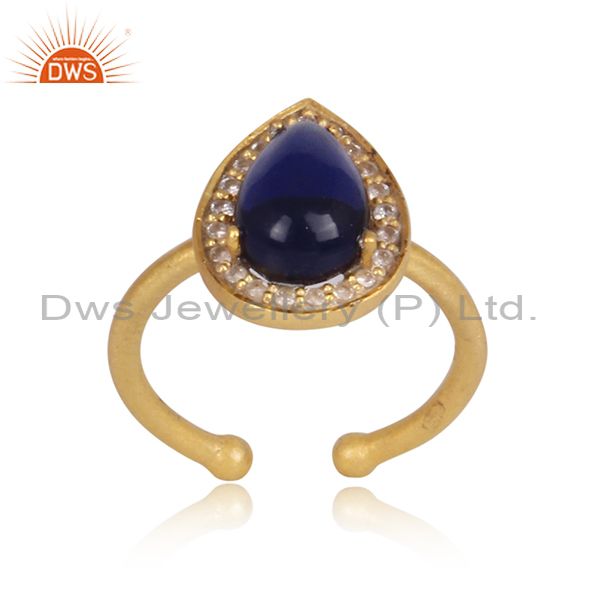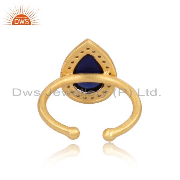 Pear Cut Corundum Blue CZ Gold On Silver Adjustable Ring