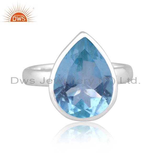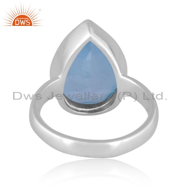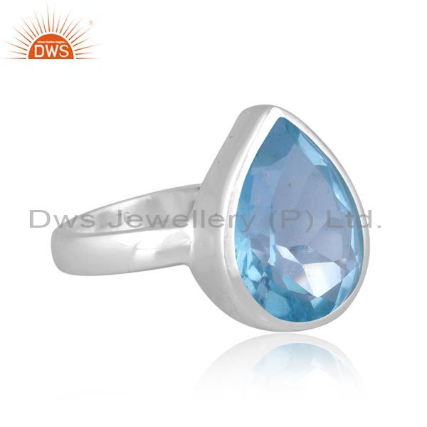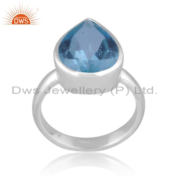 Pear Cut Doublet Aquamarine Quartz Set Fine 925 Silver Ring