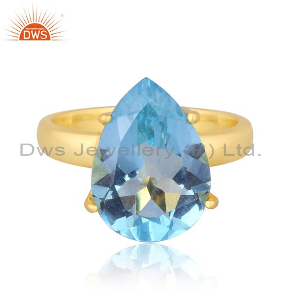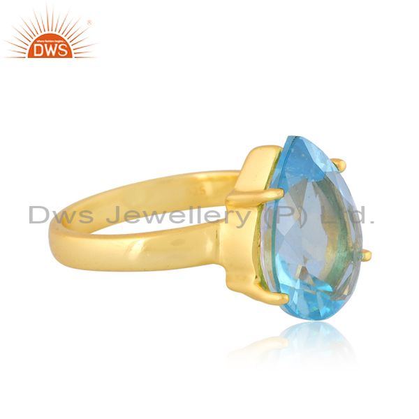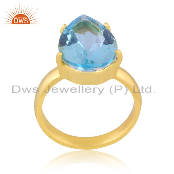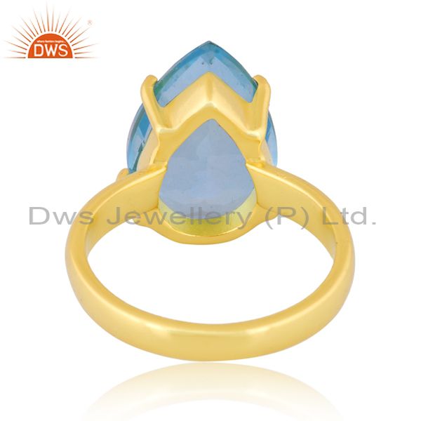 Pear Cut Doublet Aquamarine Quartz Set Gold On Silver Ring