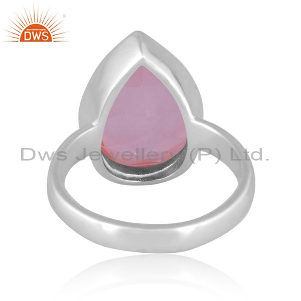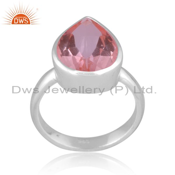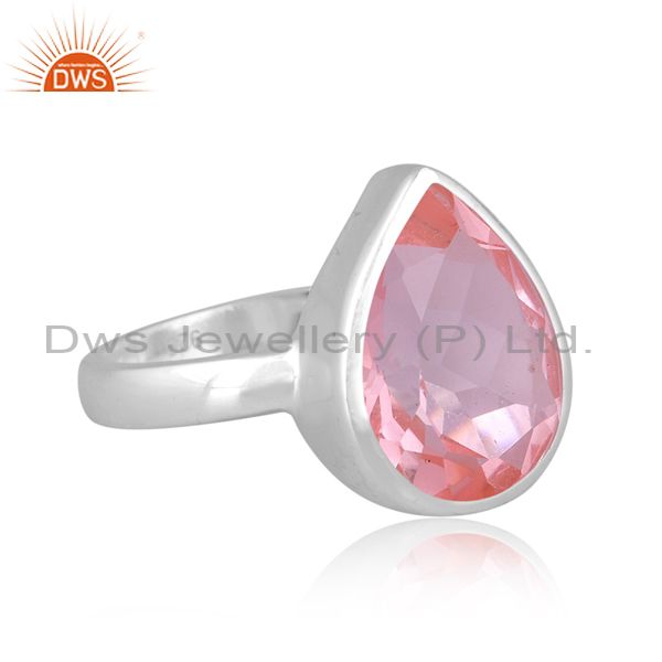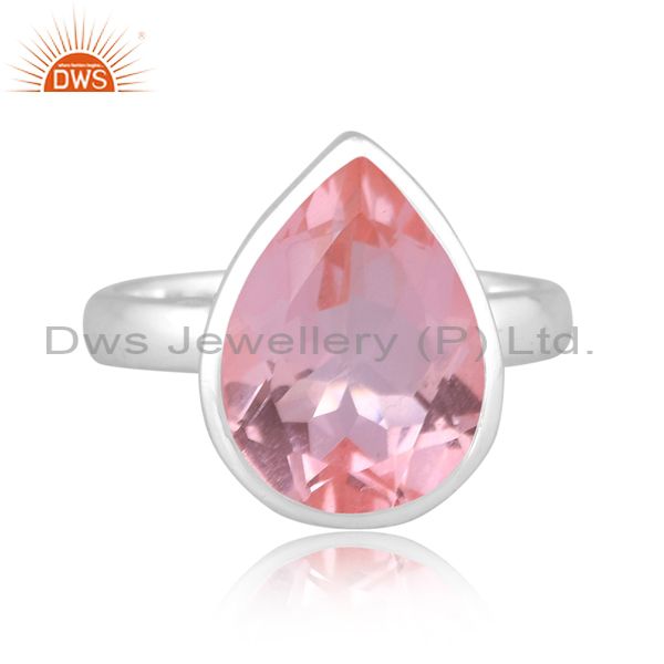 Pear Cut Doublet Morganite Quartz Set Fine 925 Silver Ring