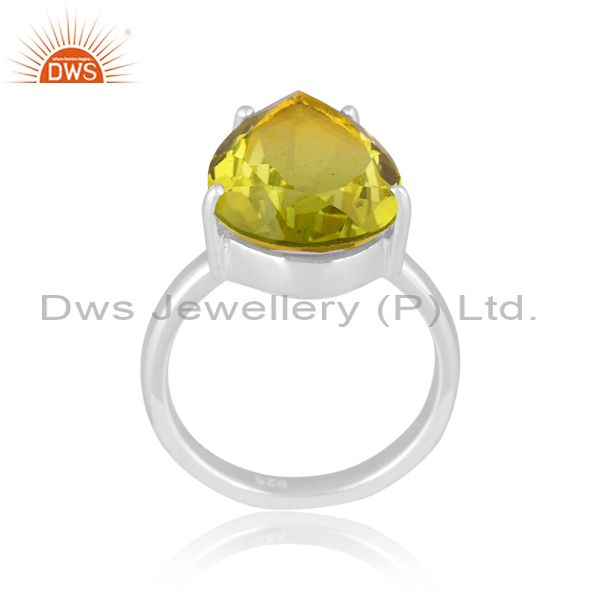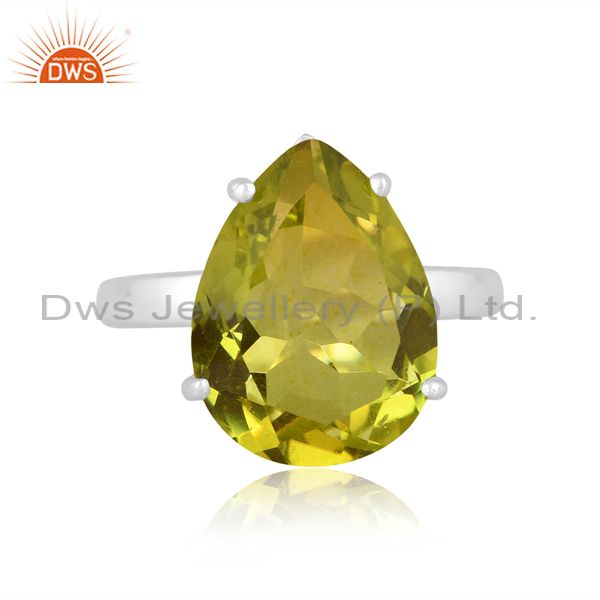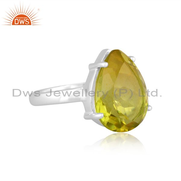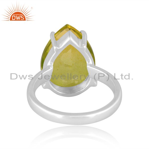 Pear Cut Doublet Peridotquartz Set Fine 925 Silver Ring