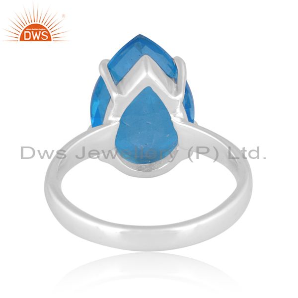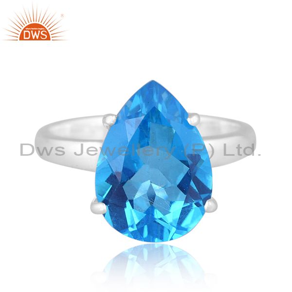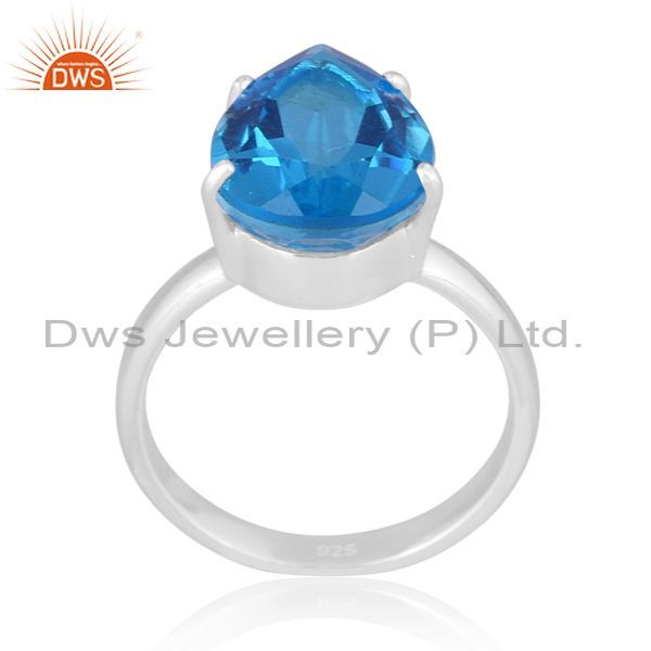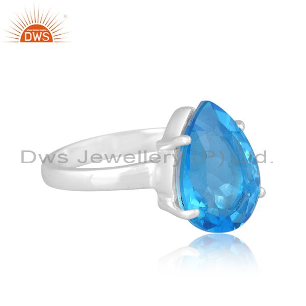 Pear Cut Doublet Swiss Blue Topaz Quartz 925 Silver Ring