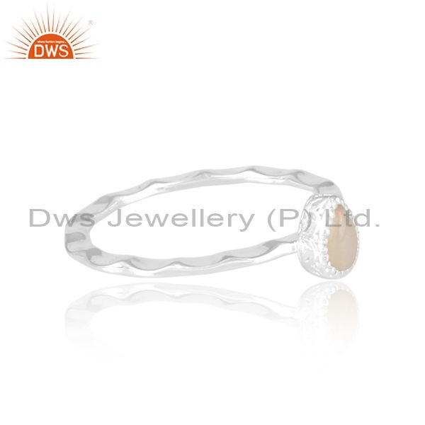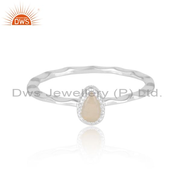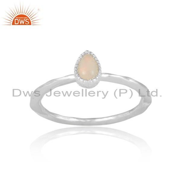 Pear Cut Ethiopian Opal Set Fine Silver Handhammered Ring