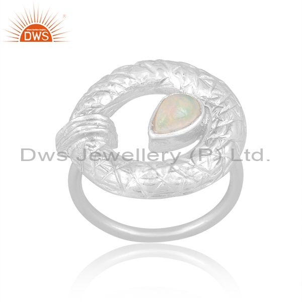 Pear Cut Ethiopian Opal Set Handmade Fine Silver Fancy Ring