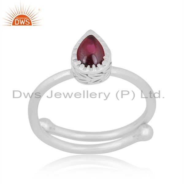 Pear Cut Garnet Set Fine 925 Sterling Silver Crown Ring