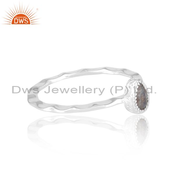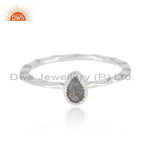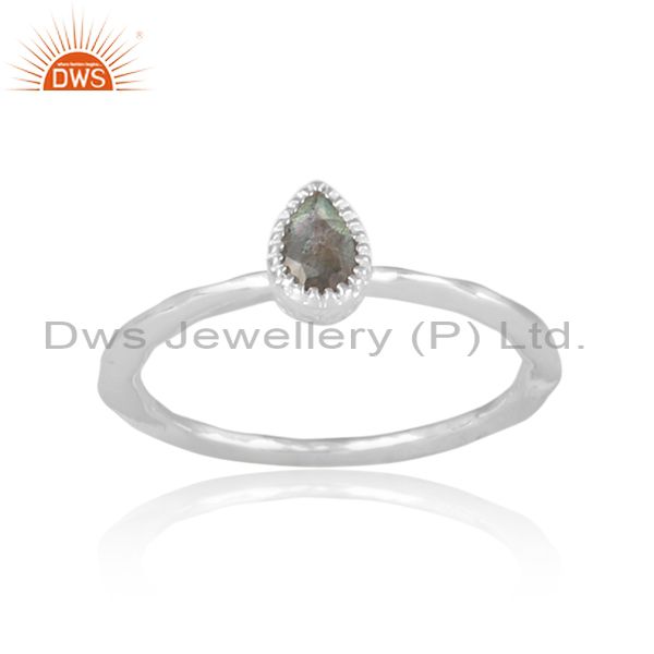 Pear Cut Labradorite Set Fine 925 Silver Handhammered Ring