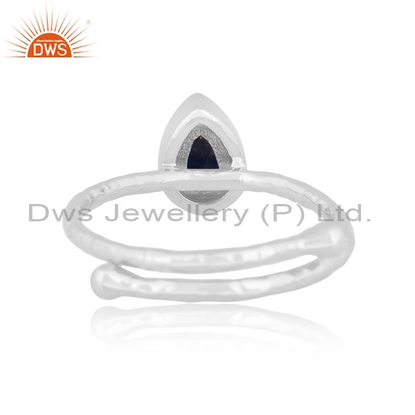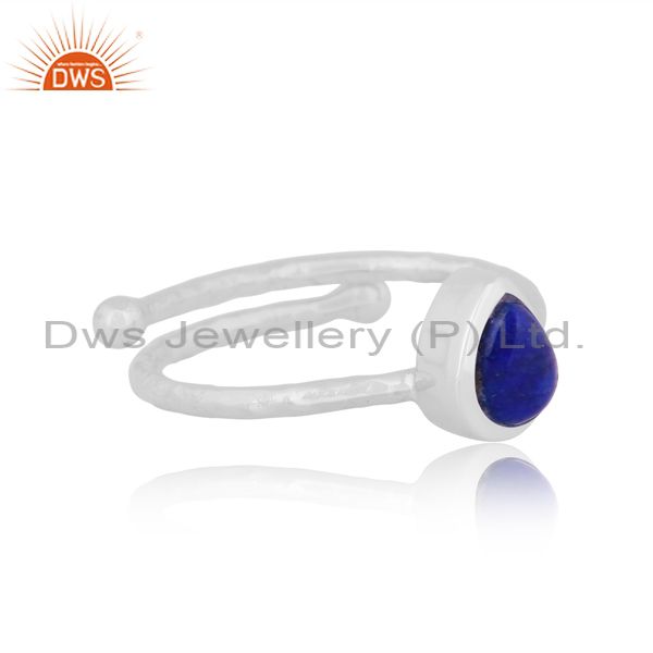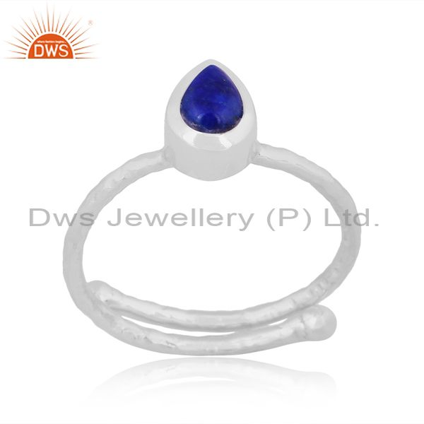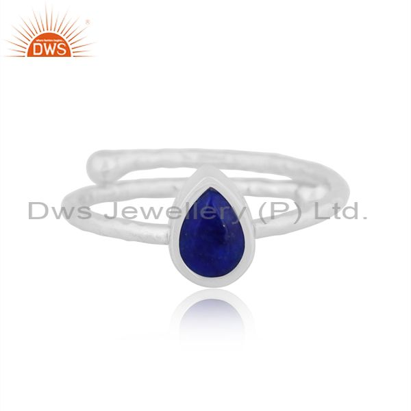Pear Cut Lapis Set Fine Sterling Silver Designer Crown Ring