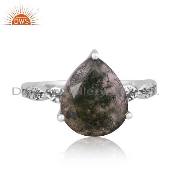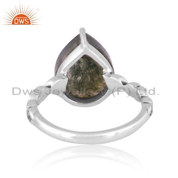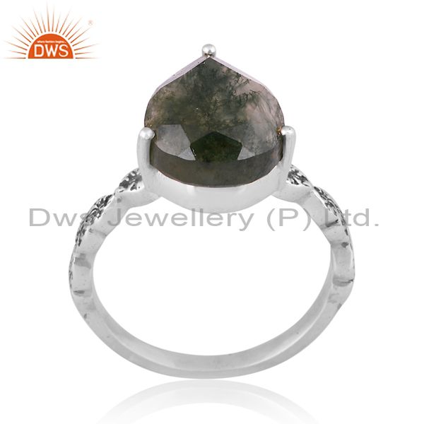Pear Cut Moss Agate Set Fancy Handmade Oxidized Silver Ring