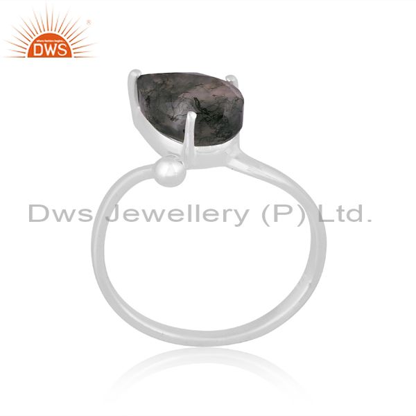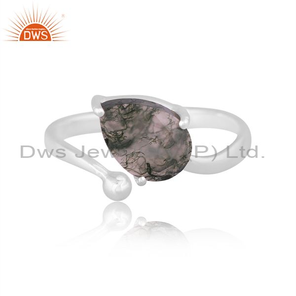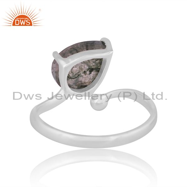 Pear Cut Moss Agate Set Fine 925 Sterling Silver Classic Ring