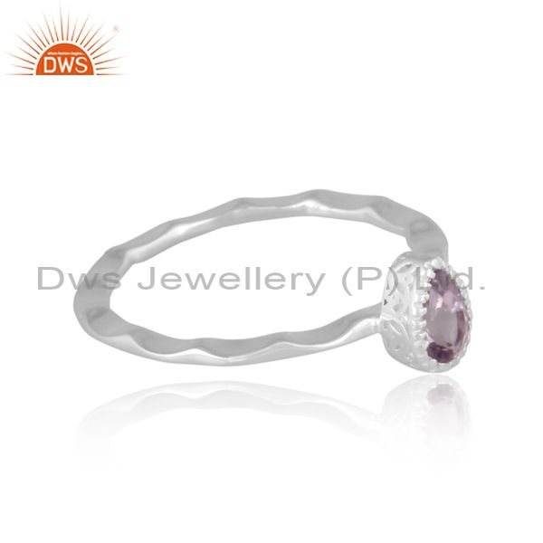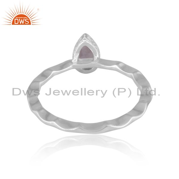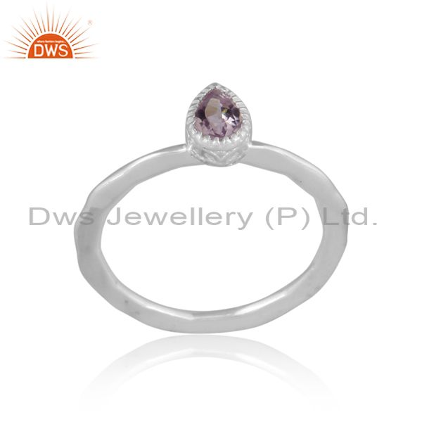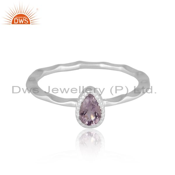 Pear Cut Pink Amethyst Set Fine 925 Silver Handhammered Ring