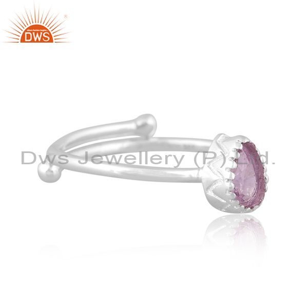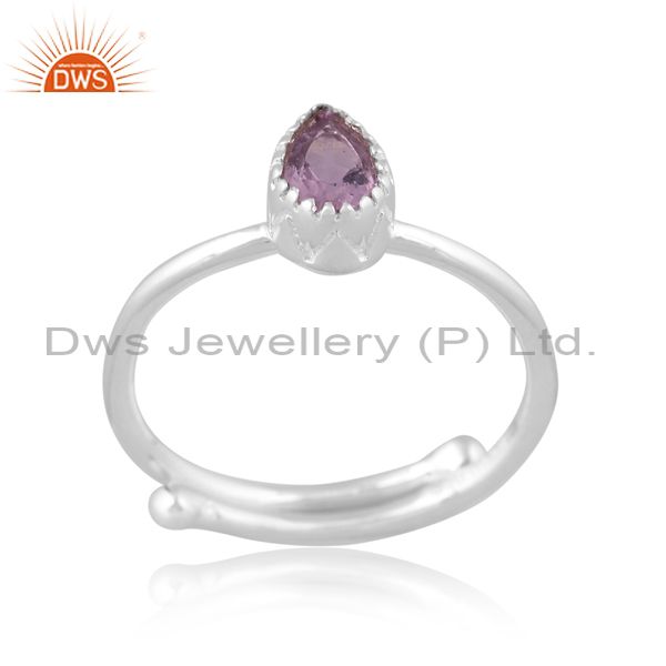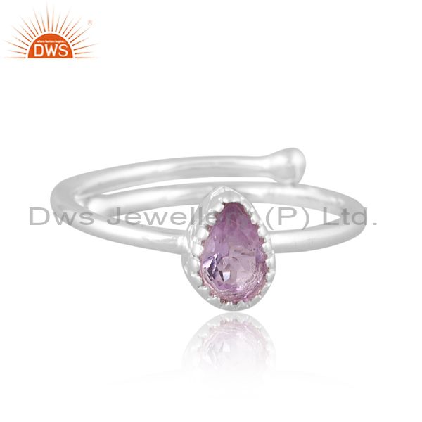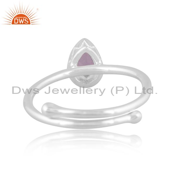 Pear Cut Pink Amethyst Set Fine 925 Sterling Silver Ring