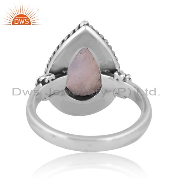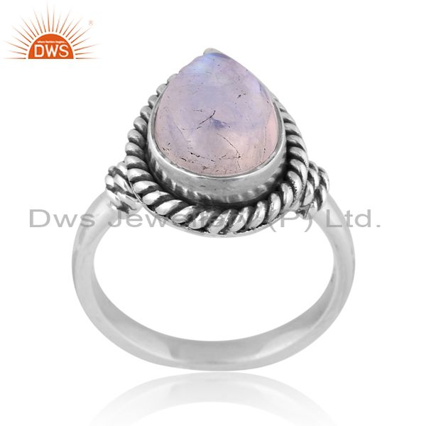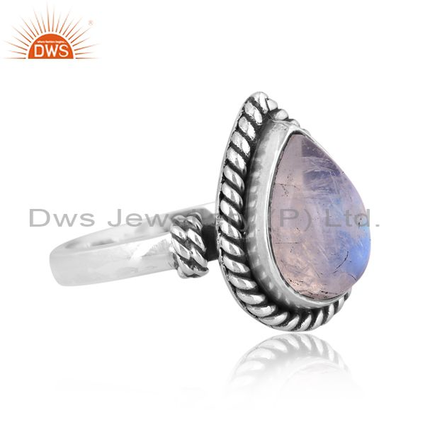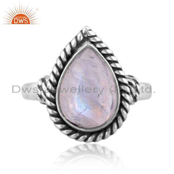 Pear Cut Rainbow Moon Stone Oxidized Silver Designer Ring
